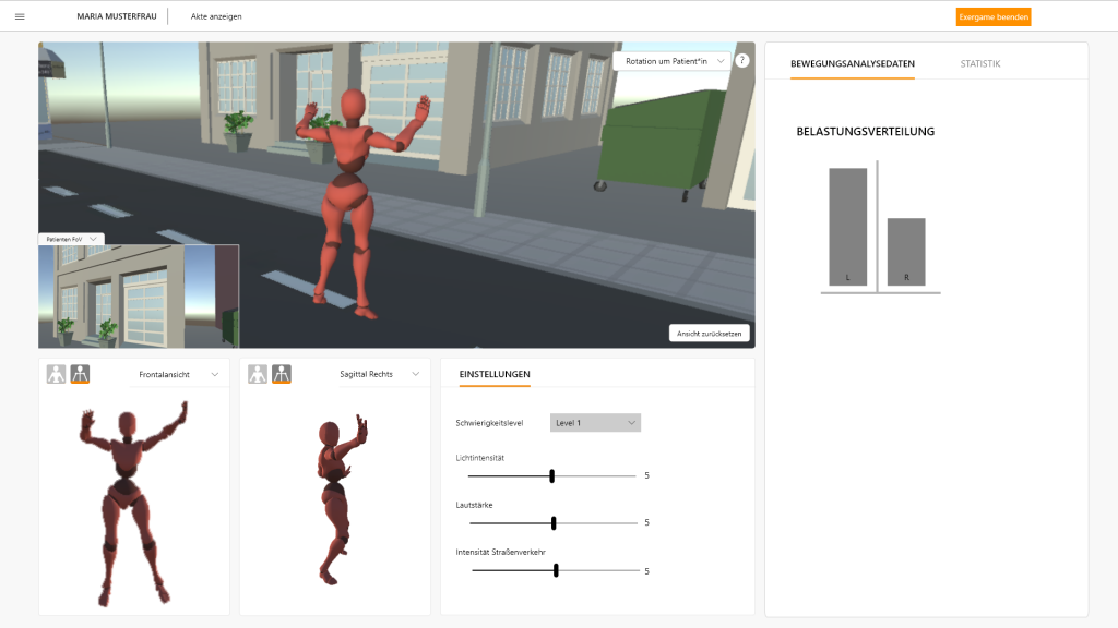 If the patient’s motion is tracked via Motion Tracking, his/her movements can be displayed by an avatar. Implementing this avatar helps the therapist to always keep sight on the patient, even when looking at the screen when changing parameters or observing tracked gait data.