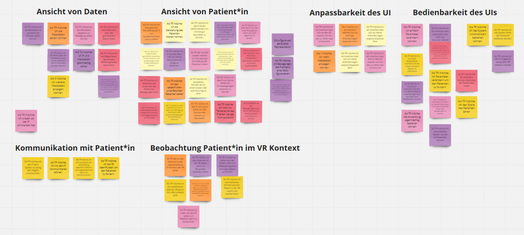 To learn about users’ needs interviews with experts in the field of physiotherapy and gait analysis have been conducted. The findings of the interviews were then re-formulated into User Stories to make sure the final UI adheres to the users’ requirements.